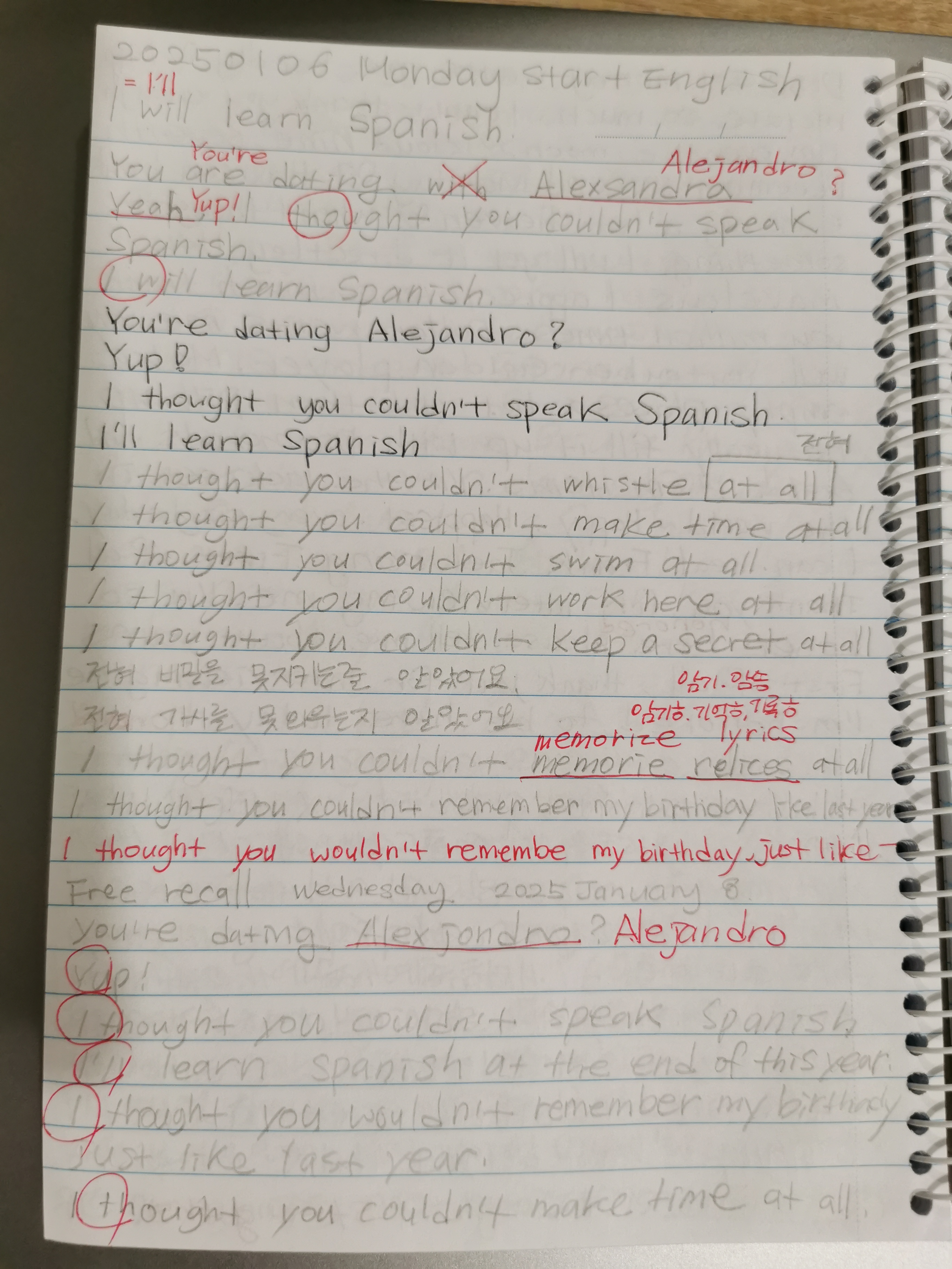 | 25.01.07 I'm going on a diet. ๋ค์ด์ดํธ๋ฅผ ํ ๊ฑฐ์์. (1) | 2025.01.09 |